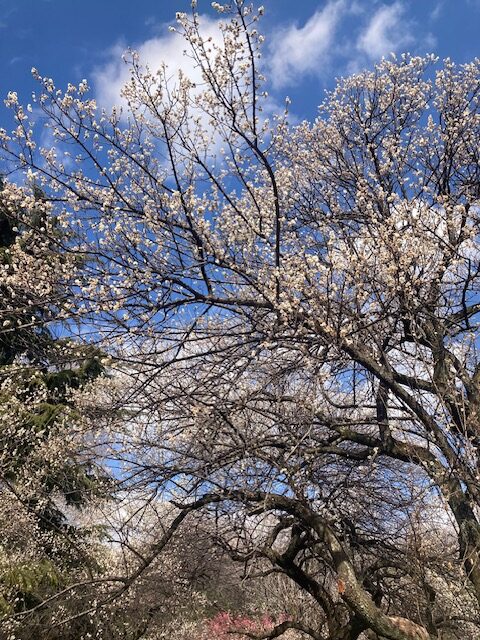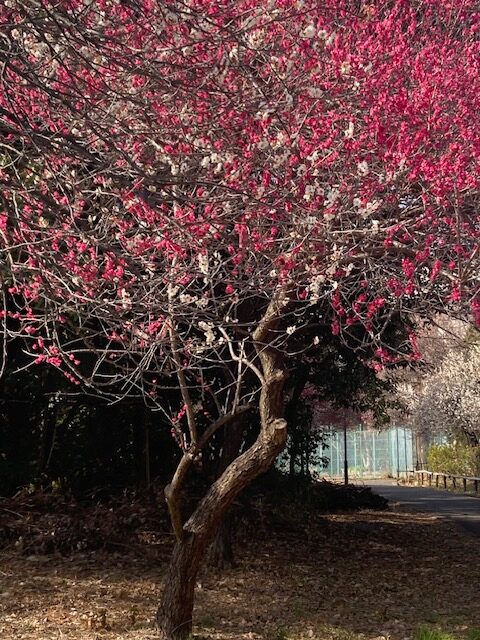 良い天気の暖かい休日。京王井の頭線に乗車中、駒場東大前駅を過ぎた辺りで見頃を迎えた美しい梅林が目に飛び込んできました。思わず近くで見てみたくなり、復路では下車。大学の構内入口の手前を右折して小径をたどっていくと、電車の窓から見えたあの場所へたどり着きました。訪れる人も少なく、紅白の梅が咲き乱れる一画で梅の香りを静かに堪能できて、大変に満足しました。(KS)